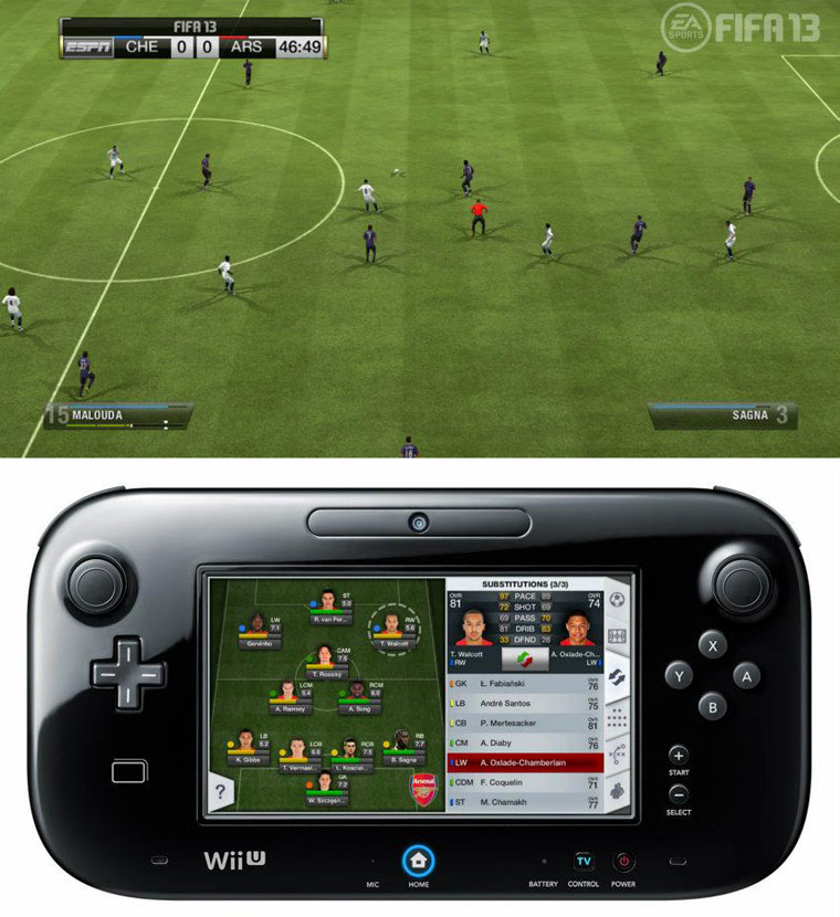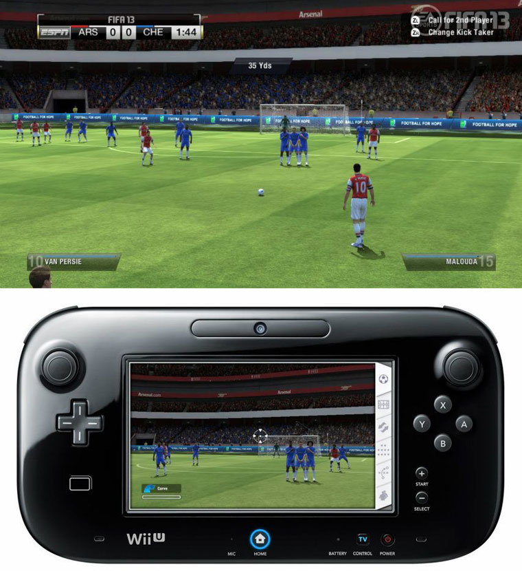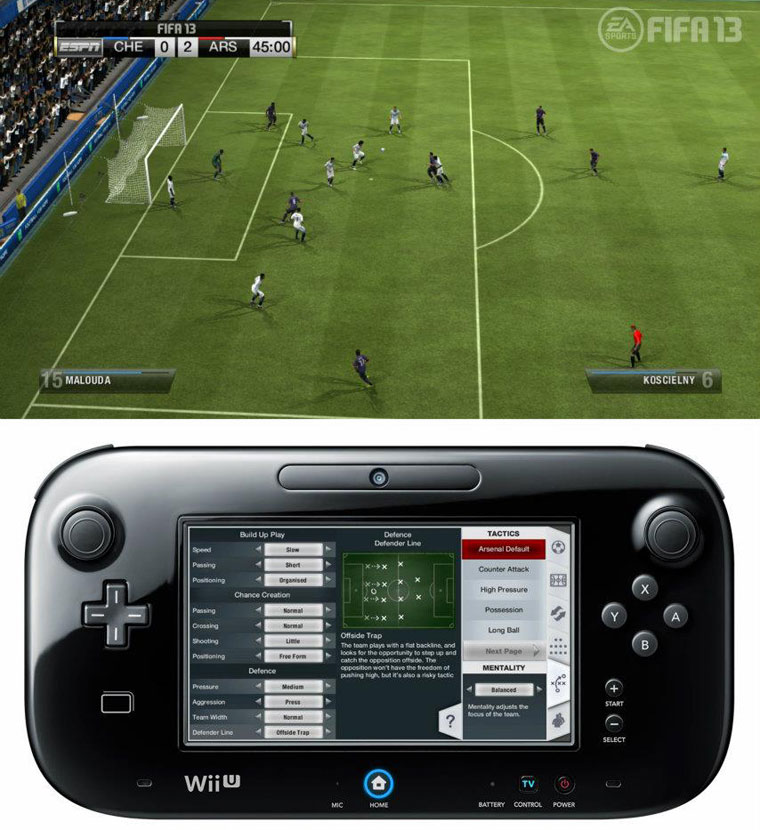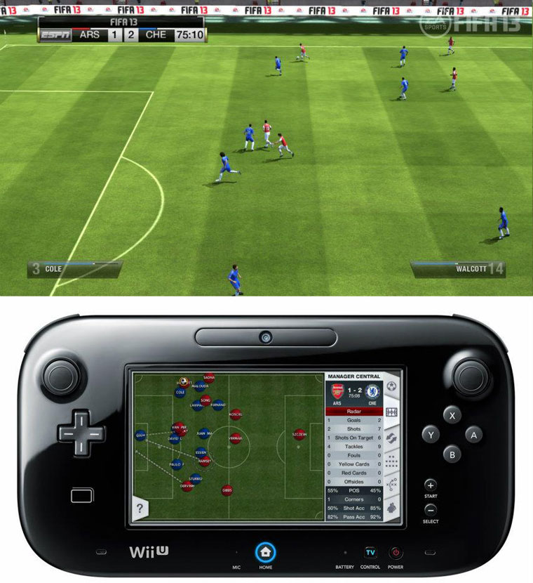 EA Sports ha dado ha conocer las primeras imágenes de su próximo lanzamiento deportivo del mundo del fútbol, el 'Fifa 13', pero en este caso para la próxima plataforma de sobremesa la Wii U. El mando que aporta la plataforma dará una nueva visión al juego, ya que podremos dirigir a los jugadores a nuestro antojo y construir la mejor estrategia de juego colocando la defensa y el ataque.