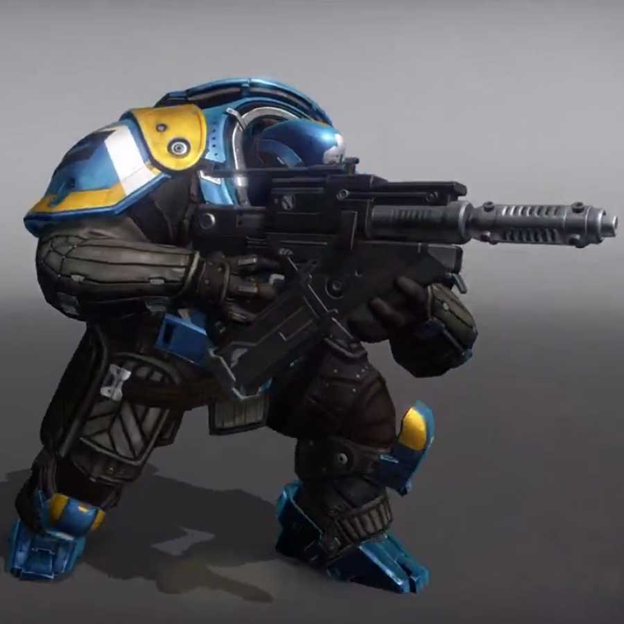 Esta es la mole de la que hablábamos antes. Parece un tanque sobre dos piernas. Podríamos decir que se trata de la artillería pesada. Armado con un arma de fuego y con movimientos lentos, parece la unidad idónea para ocupar la retaguardia o realizar cargas suicidas.