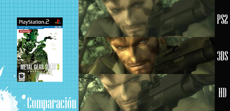 Pero, ¿cómo de diferente se ve en esta edición? aquí mostramos una comparación de imágenes entre el juego original, que corría en PlayStation 2, la versión HD, para Xbox 360 y PS3; y la adaptación a 3DS de Nintendo, que como seguramente muchos de vosotros sabréis saldrá al mercado el día 6 de marzo. ¿Donde creéis que luce mejor Solid Snake?