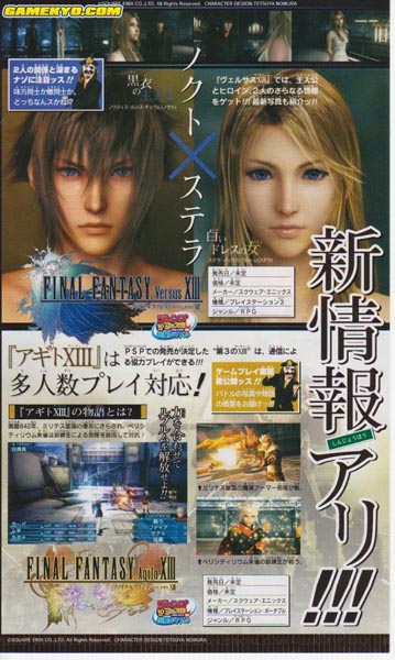 Square Enix ha publicado en la revista  Shonen Jump el nombre del misterioso hombre rubio que pudimos ver en los últimos videos Final Fantasy XIII Su nombre es Snow. Square Enix también ha revelado los 2 nombres completos de dos personajes de Final Fantasy Versus XIII : Noctis Lucius Cheram「ノクティス・ルシス・チェラム」y Stella Nox Fulure「ステラ・ノックス・フルーレ」. Estos nombres están traducidos del japonés.
